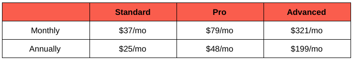 Cost: the below prices are for their DIY packages and based on annual billing.