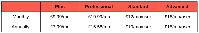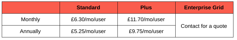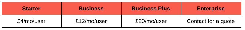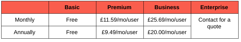 Cost: the more people you onboard the lower the price per-user, but here’s a rough idea of what to expect for their Cloud plans: