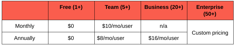 Cost: at the moment, your entire team can use all their features for free, however, some ‘Packs’ require a paid account.