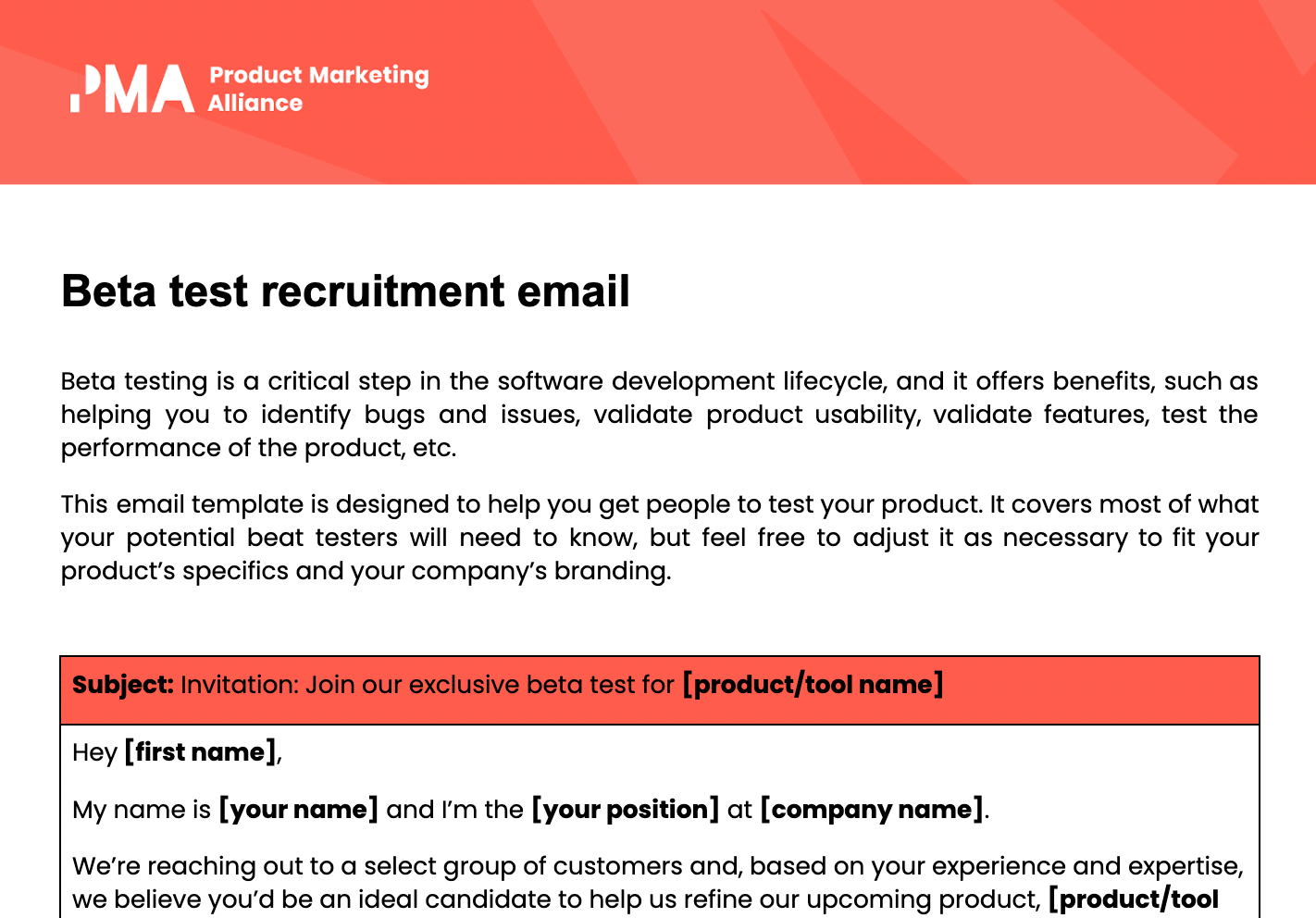 Tested and refined by leading PMMs, the template aims to convey the value of the beta testing program, outline participant expectations, and ensure a smooth recruitment process.
