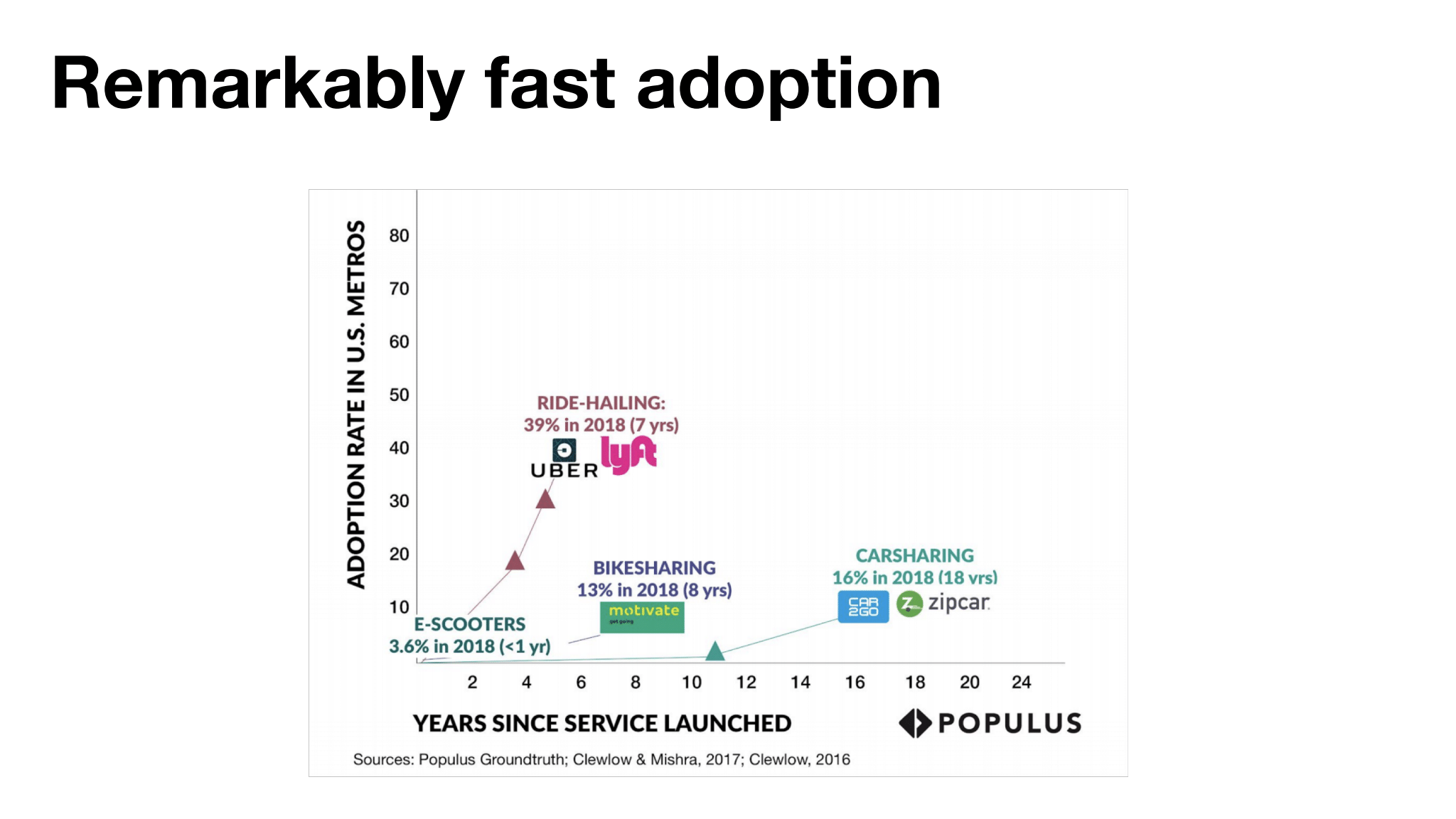 "In less than 12 months, the adoption rates in the US industry were about 3.6%. That means that 3.6% of the people in major US cities have actually tried one of these products. This is huge. If you look at ride share and how Uber was doing for that same metric, it was actually much lower."