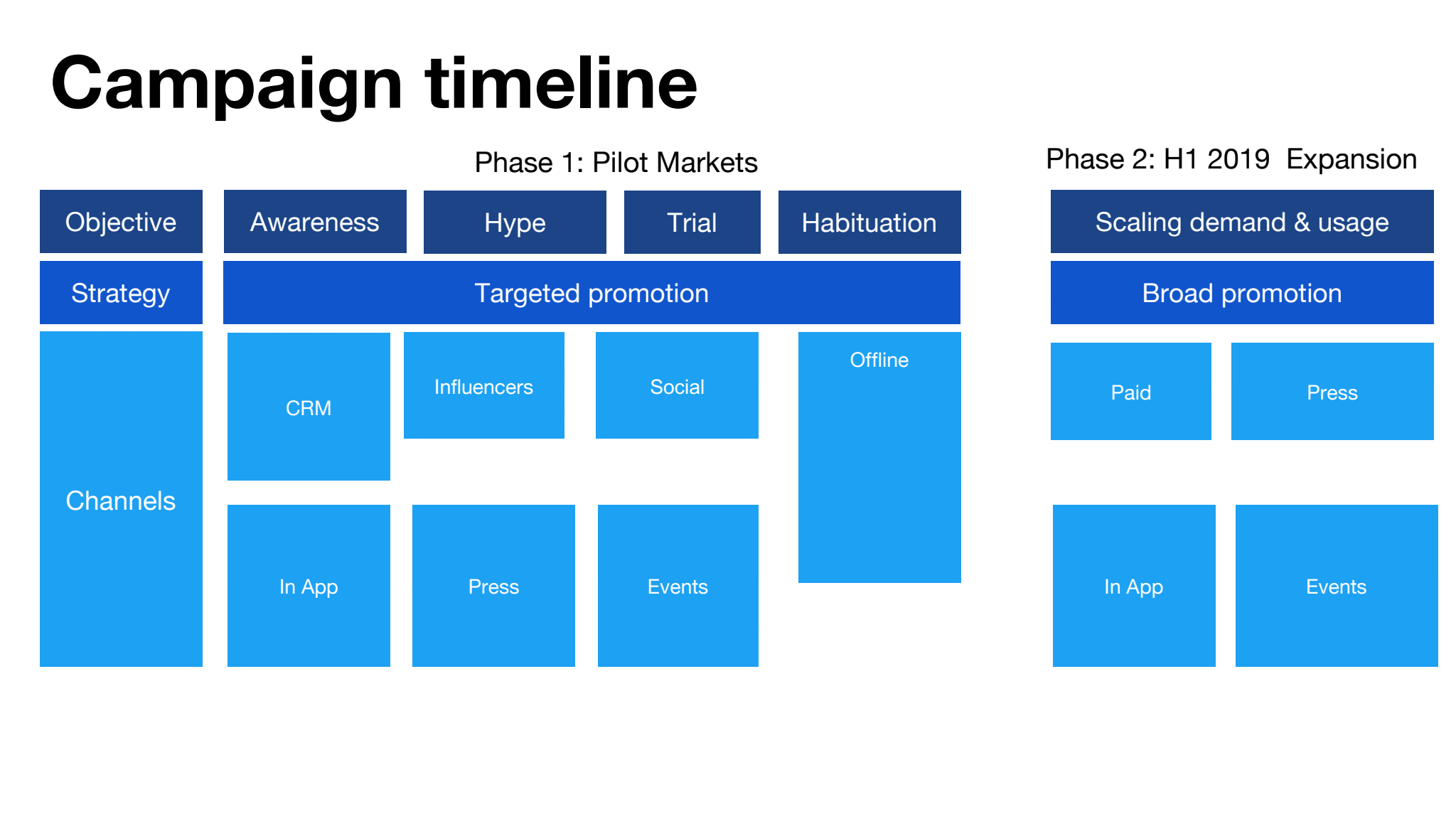Another channel that I really do like and we spend a lot of time on was obviously PMM product. So, where do we locate the entry point to this product? The thing to know is for tech reasons and also before we actually prove product market fit, we didn't want to disturb what we call the product selector, which is where you actually choose your mode, between Uber x or Uber pool or Van - this place in your app. So we partnered with designers to think about where else could we actually place an entry point."