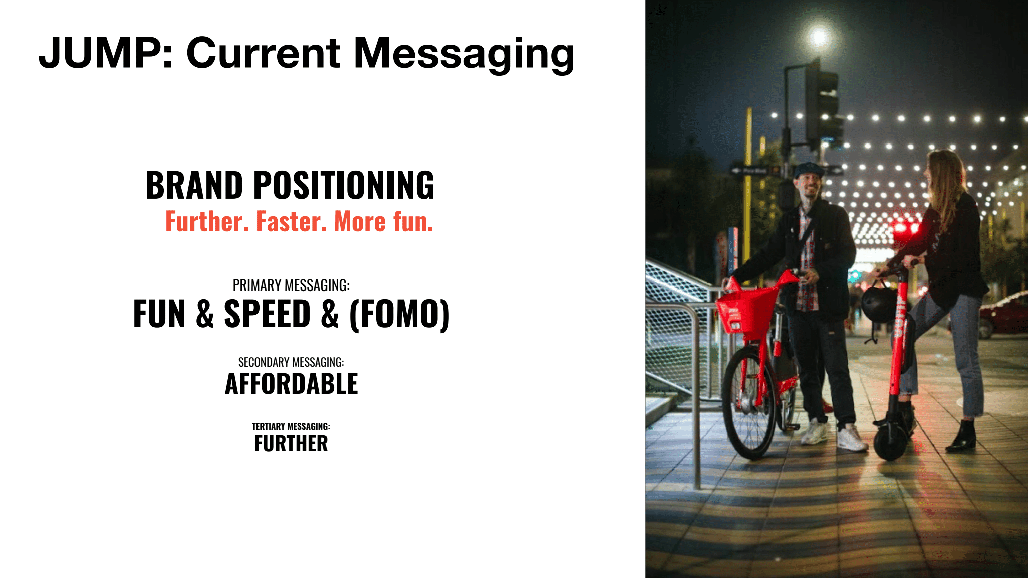 "The first launch positioning was cruise on two wheels by traffic, feel the fun, feel the freedom. And now the long term narrative that we're trying to get to is, your go to transportation of choice. And the question is, how do we get there? What are the different steps in App, with all the different cross functional teams, that we need to take to actually get there?"