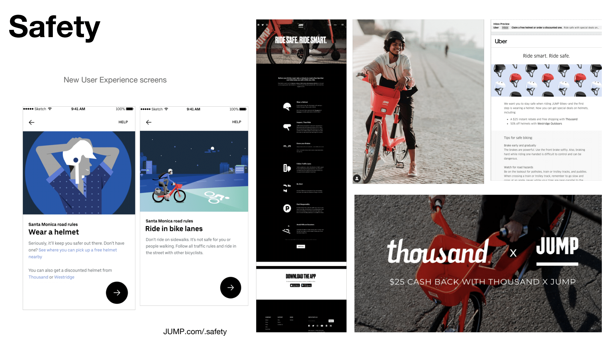 "As a new user, you have to go through a couple of onboarding screens, and we show you where to ride, how to wear a helmet and even link you to a landing page to find a discounted helmet. So, we're partnered with two companies called Retrospect and Thousand, and we give you the opportunity to get discounted helmets."