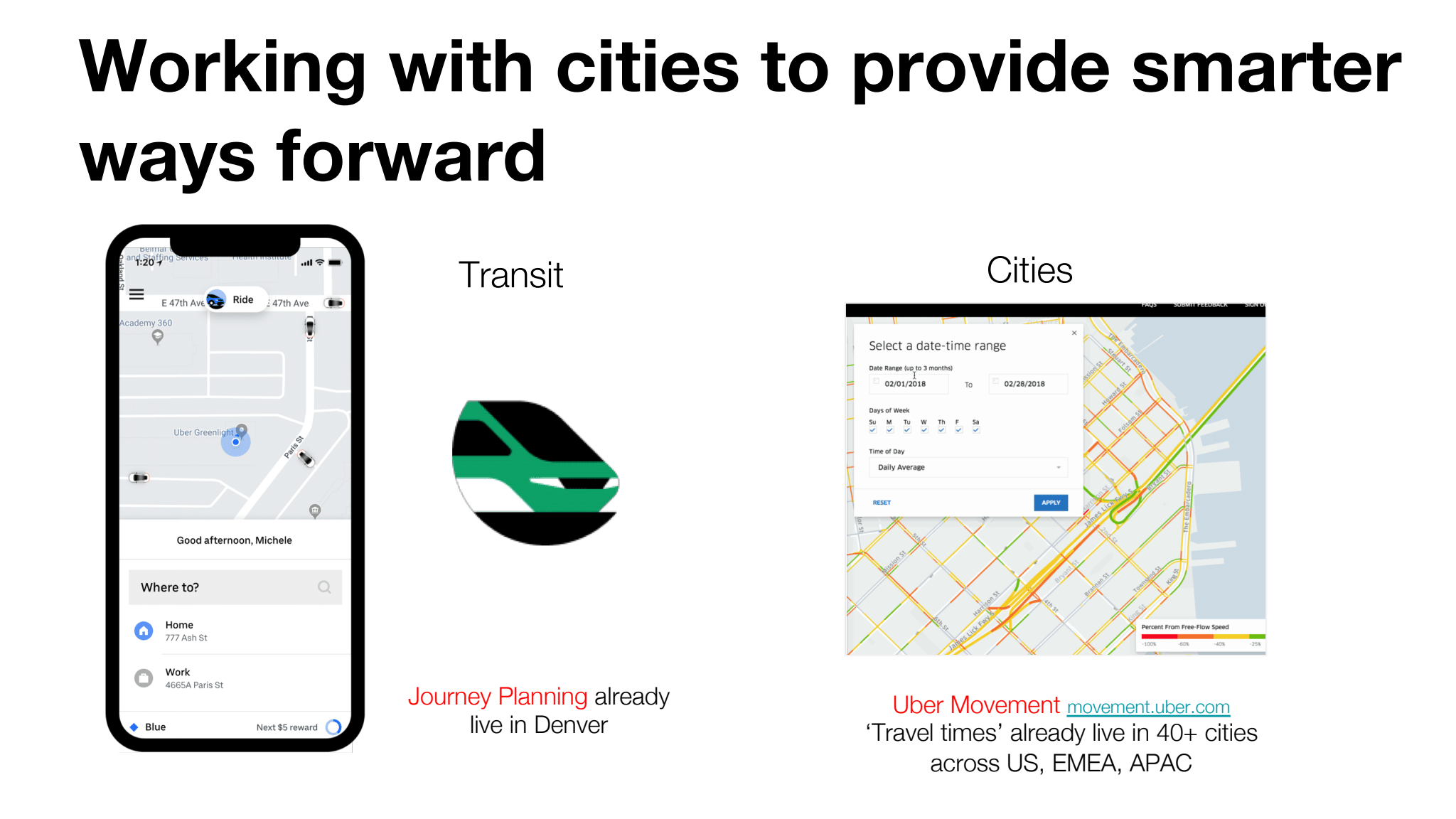 "We've launched two pilots one in Denver. So, anyone who's in Denver, I think I talked to someone who was in Denver earlier today, we've launched this pilot, where we partner with transit agencies to show that it's a journey of planning. This is what the MVP is today, where you can have on top of all the different options, and I believe we have bikes available there too. "