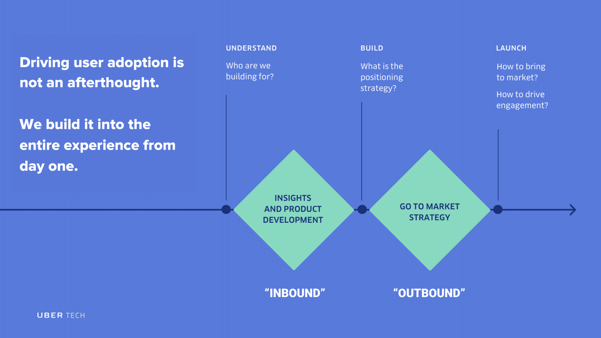 "At Uber, we try to have a seat at the strategic table when vision is being discussed about what a product should actually achieve. Although, we do work closely with Content Strategists, Serum Analysts, and all the above to actually bring this campaign to life. We do follow all this execution really closely and we work with PMs to define what the strategy should look like."