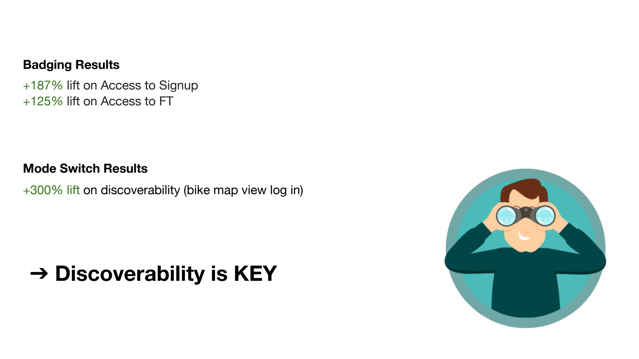 "We had, for the badge experiments, almost 200% lift on access to sign up. Access being when someone just clicks on the word bike, and sign-up is when you've onboarded and gone through all the new user flow."