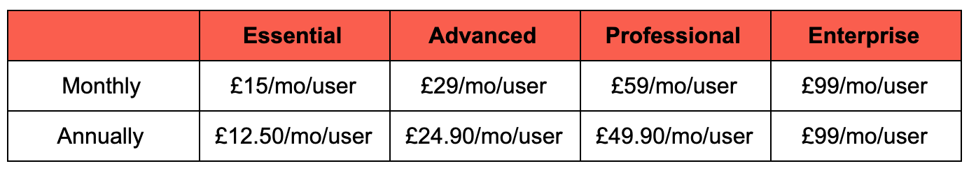 Cost: each plan comes with a £350 monthly platform fee, too.