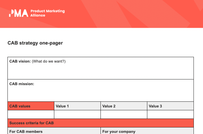 Created for product marketers, customer marketers, or anyone tasked with developing a CAB strategy, the template provides a framework to help companies establish, manage, and measure the success of their CAB initiatives.