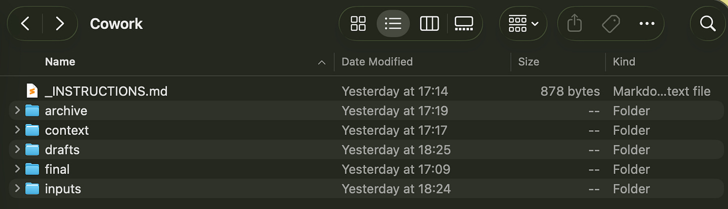 They typed a cold prompt with no context and got a generic result. That’s not a Cowork problem. That’s a setup problem.