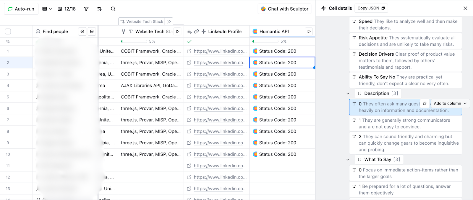Connect Humantic AI to Clay via API. Humantic analyzes public behavior: LinkedIn activity, writing samples, engagement patterns, and returns personality intelligence that populates custom fields in your CRM.