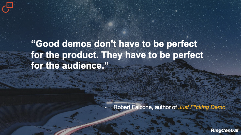 Demos with inconsistent messaging and delivery. Probably one of the most maddening things I discovered when I first joined RingCentral is trying to bring all that together.