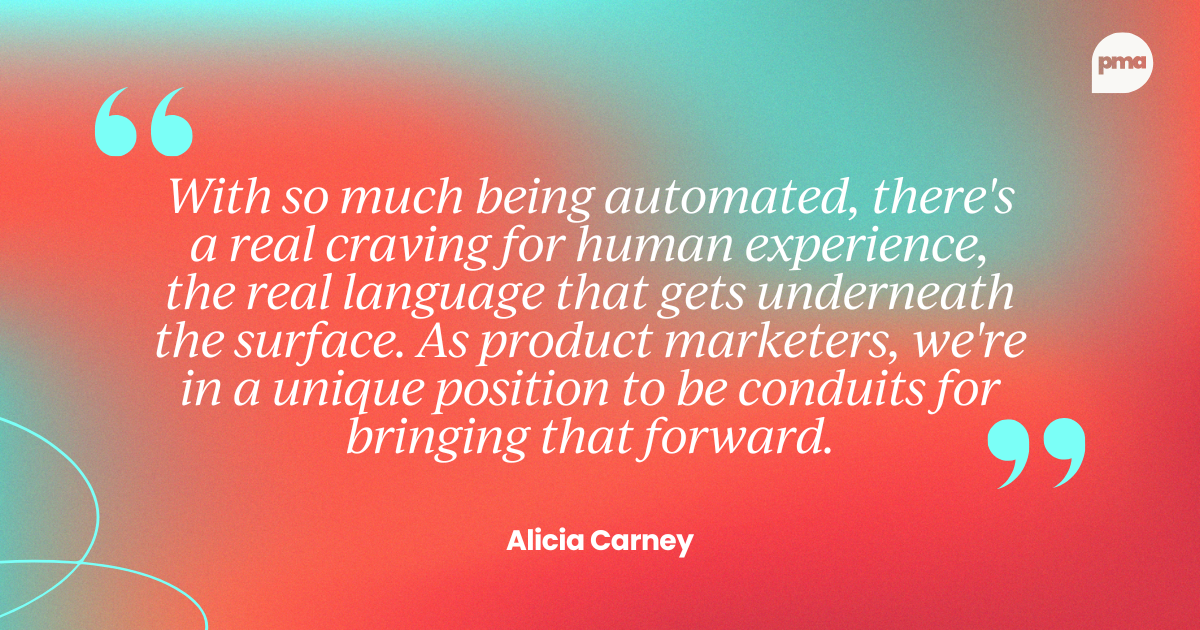 With so much being automated, there's a real craving for human experience, that rawness, that ugly insight, the real language that gets underneath the surface. As product marketers, we're in a unique position to be conduits for bringing that forward.