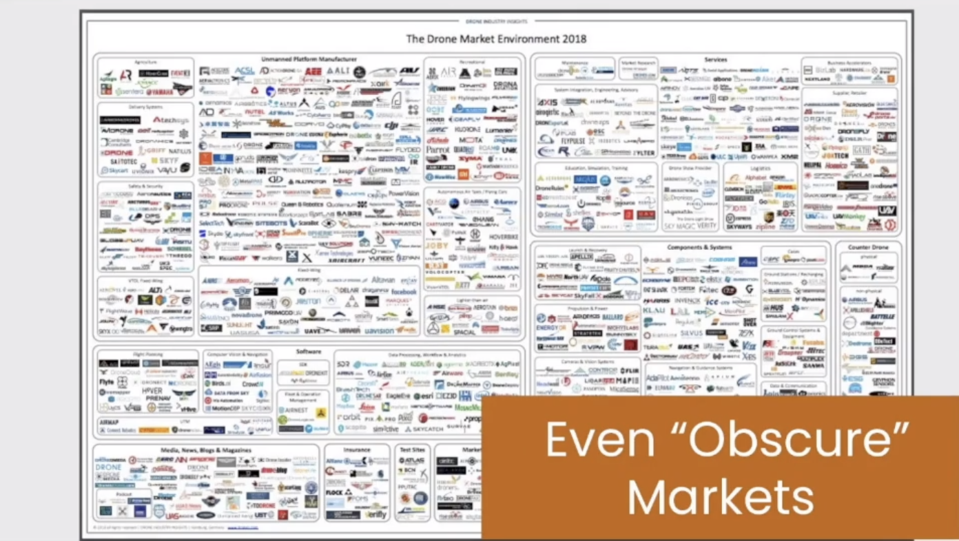 Once I was speaking at a conference and a guy came up to me afterward, and he said, "You know April, my market isn't actually all that crowded. I'm in the drone technology market". I was like, "Oh, I bet I could find one of these slides". Sure enough, there it is, the drone market.
