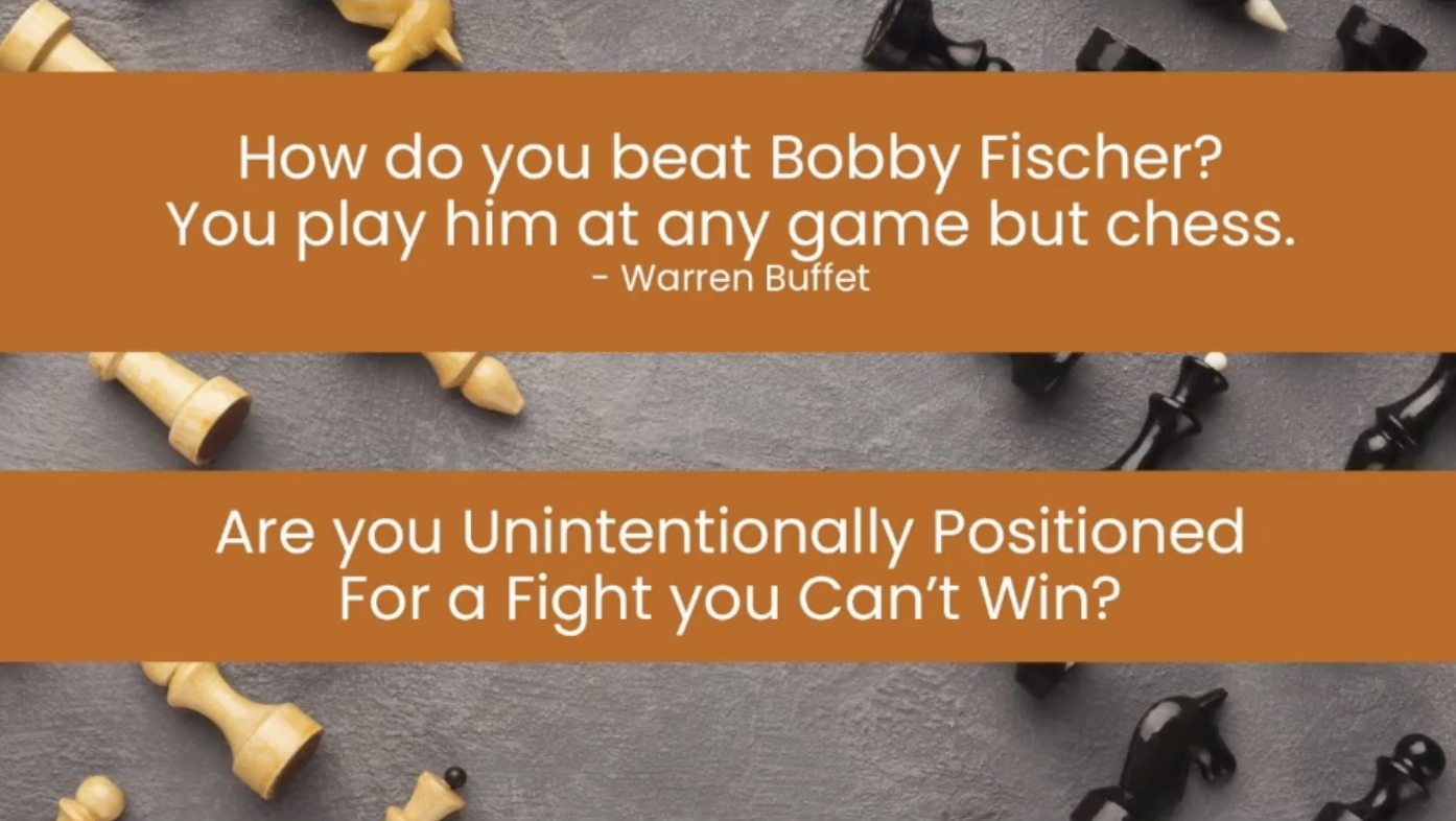Now that might sound obvious, but I like this quote from Warren Buffett where he says, 'how do you beat Bobby Fischer? You play him at any game but chess', a lot of us are essentially trying to play chess against the chess grandmaster, we are unintentionally positioned in a fight that we literally cannot win.