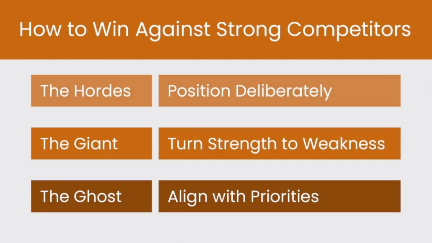 In this article, I’ll explain three of the main competitors; the hordes, the giant, and the ghost, and walk you through how to position your products or services for maximum impact, with examples from my experiences not only competing but winning.