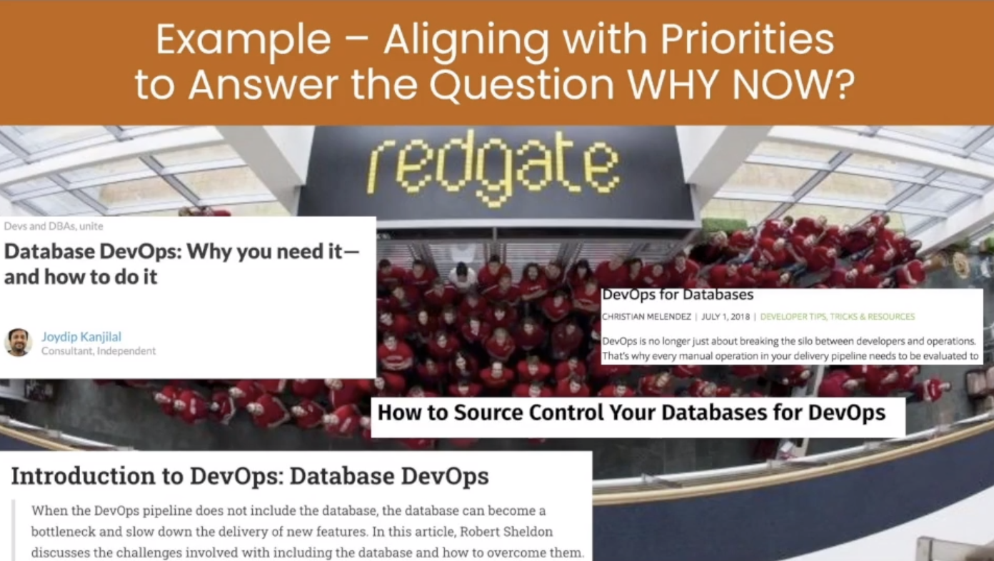 "You know what, this just isn't a priority right now. Next year we'll look at database tools. But right now, we're all focused on a DevOps transformation".