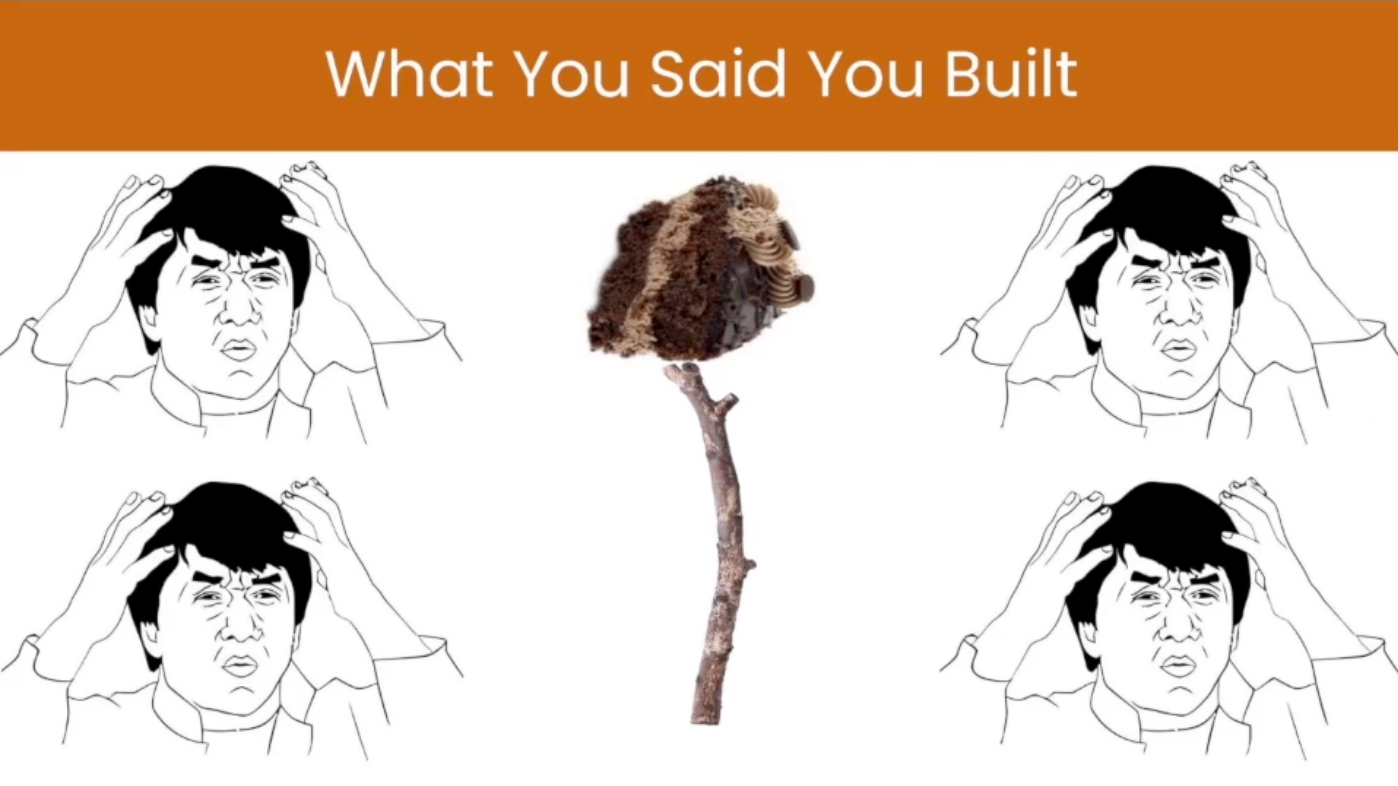 Do you think that pitch works with the lady at Starbucks? No, it doesn't. Why doesn't it? Because the Starbucks lady is going to be like, "That's not cake. That's Franken cake. That's cake doing stuff cake was not meant to do".
