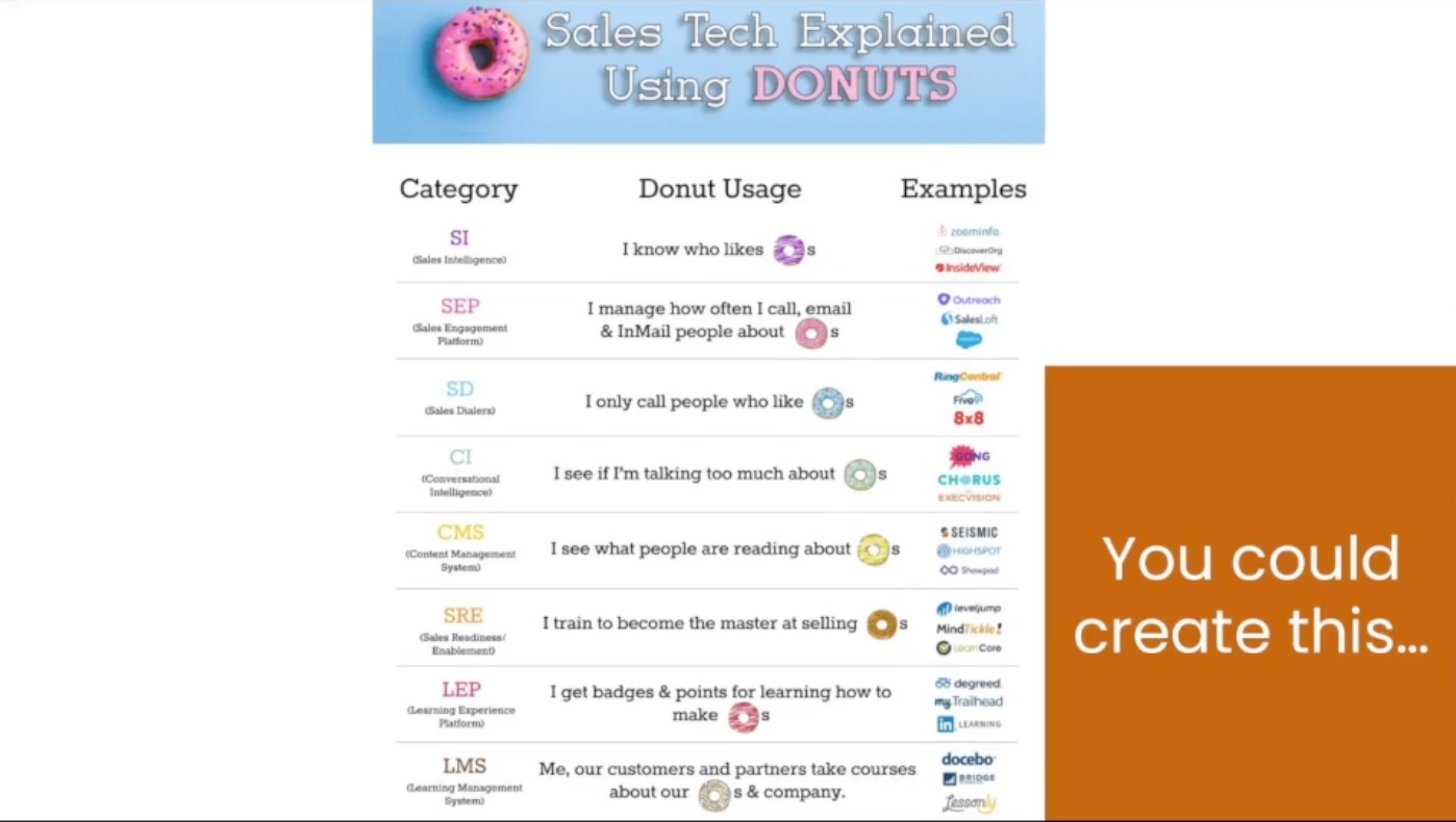 This company is called Level Jump, they’re one customer on the above chart. They did this cheeky piece of content, it was called 'sales tech explained using donuts'.
