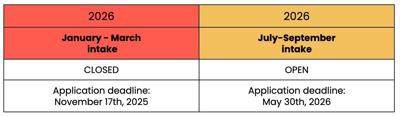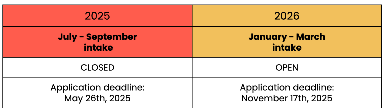 Please ensure your application includes all of the above. Due to the volume of applications we get, we don’t have time to chase individuals for missing parts; if you miss something out, you won’t be considered for the program.