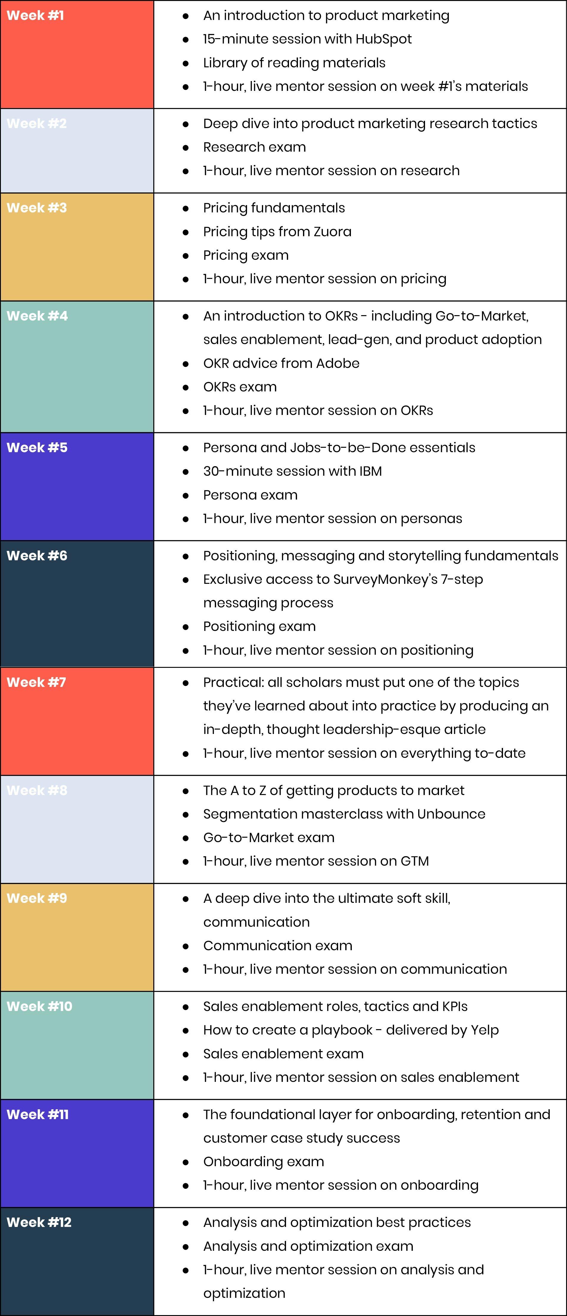 P.s. If you want to put yourself front and center of all the scholars, you (or someone from your product marketing function) are more than welcome to host all or some of the weekly mentor sessions -- providing you meet our criteria.