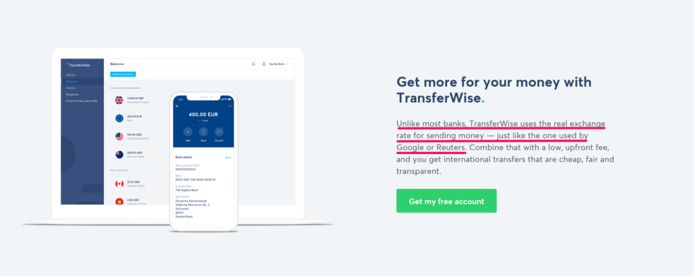 A good example is TransferWise, who claims to use the same real exchange rate Google does — a natural thing most of us do when comparing currencies to one another.