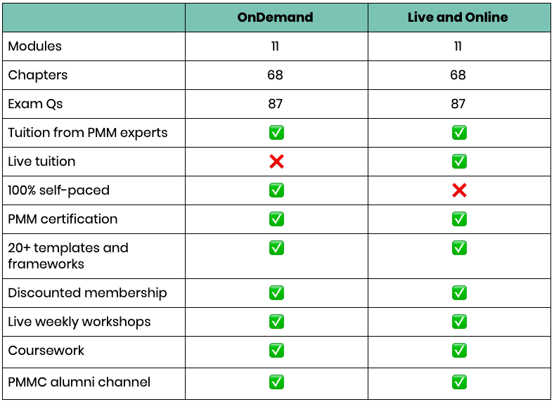 To reiterate, the courses are very much what they say on the tin. Product Marketing Core [On Demand] is a course you can complete in your own time, i.e. on-demand, while Product Marketing Core [Live and Online] is delivered in real-time by an experienced product marketer.