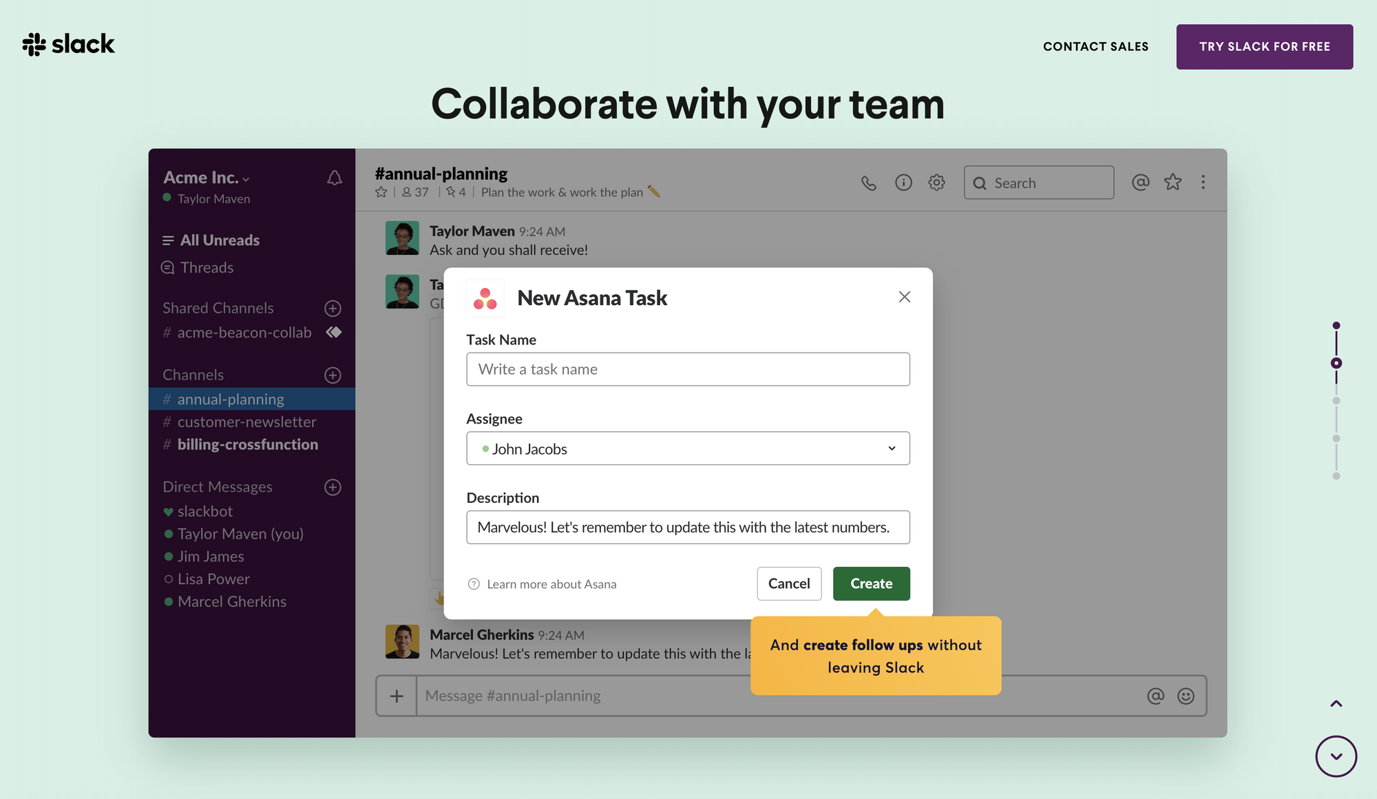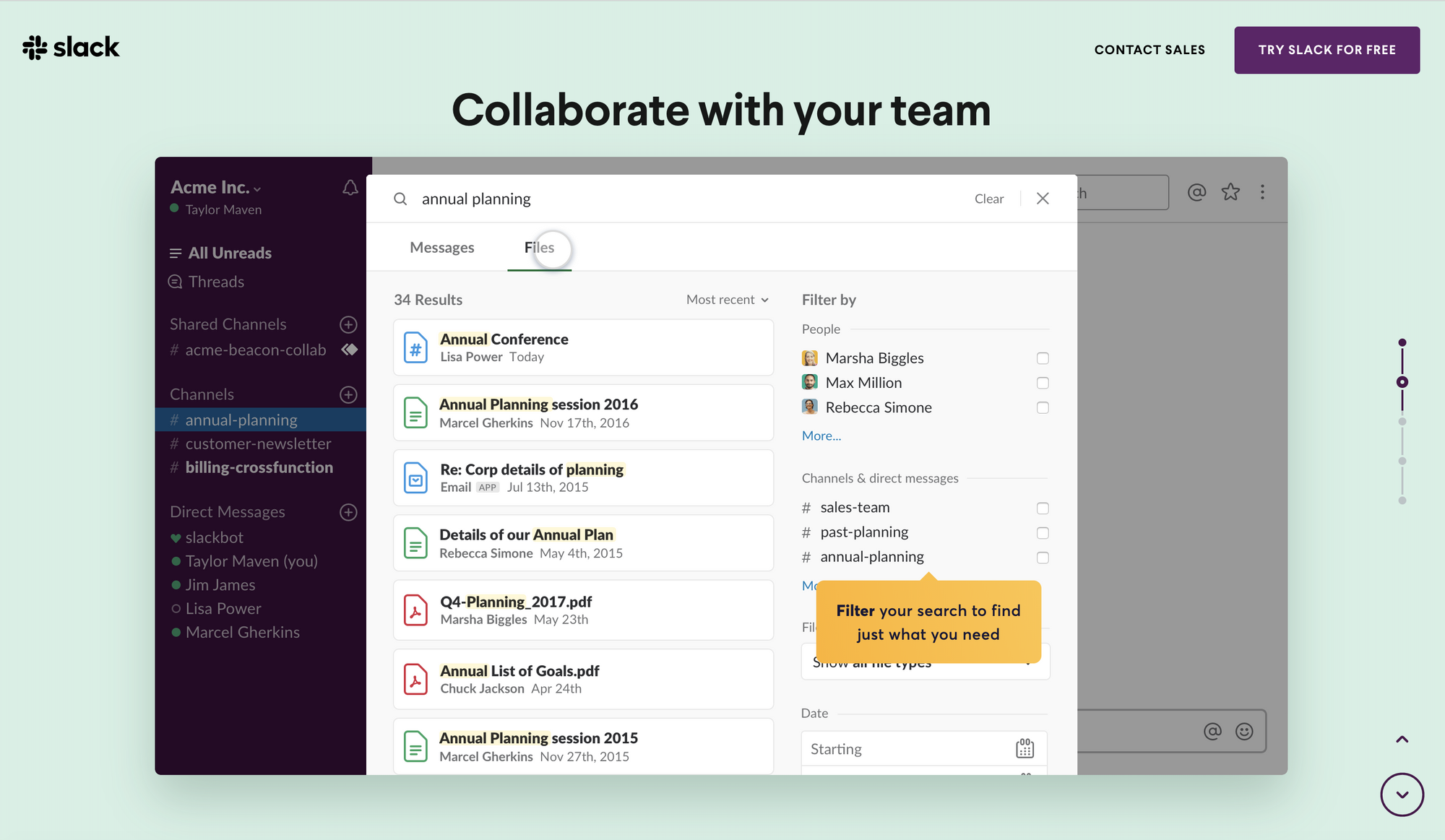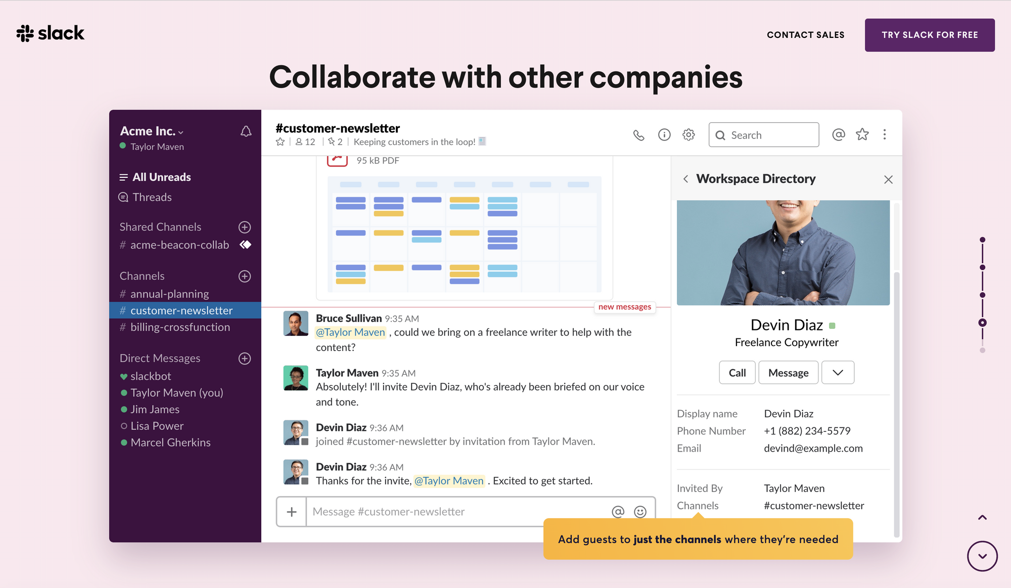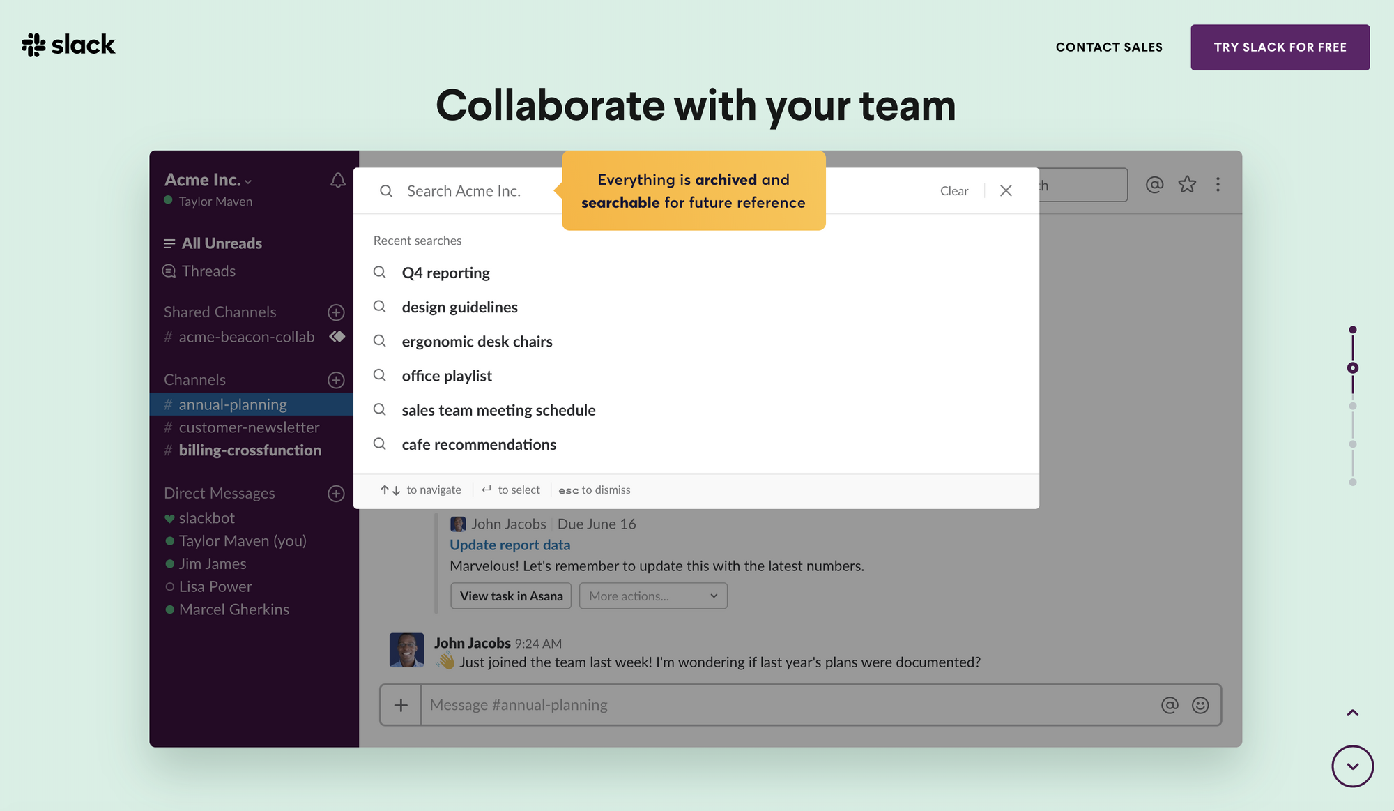(Each screenshot below represents one panel in Slack’s latest scrolling product demo. Click here to see the demo live.)