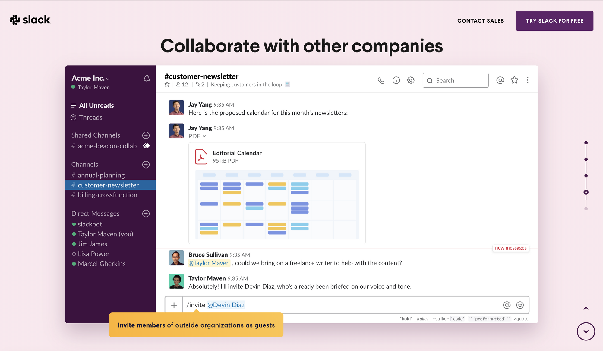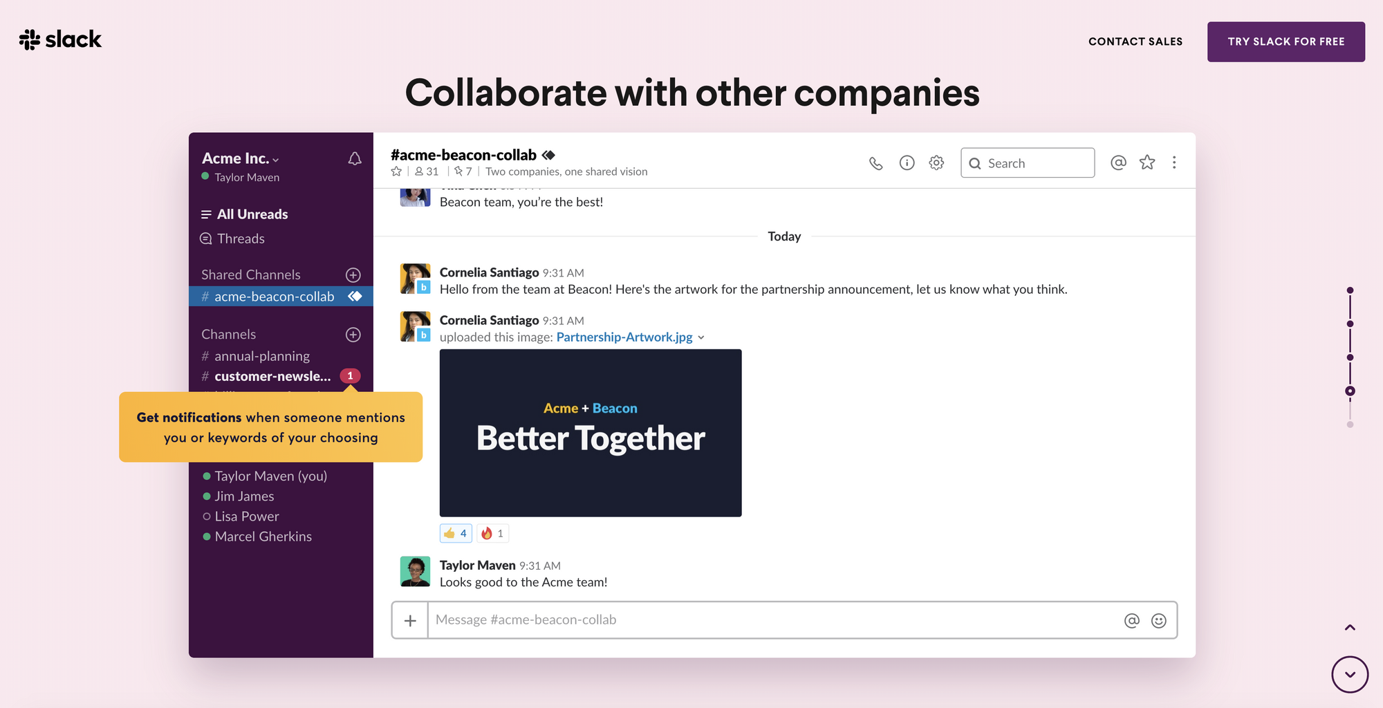 Push: Company-to-company communication is better organized in Slack than in traditional email threads.
