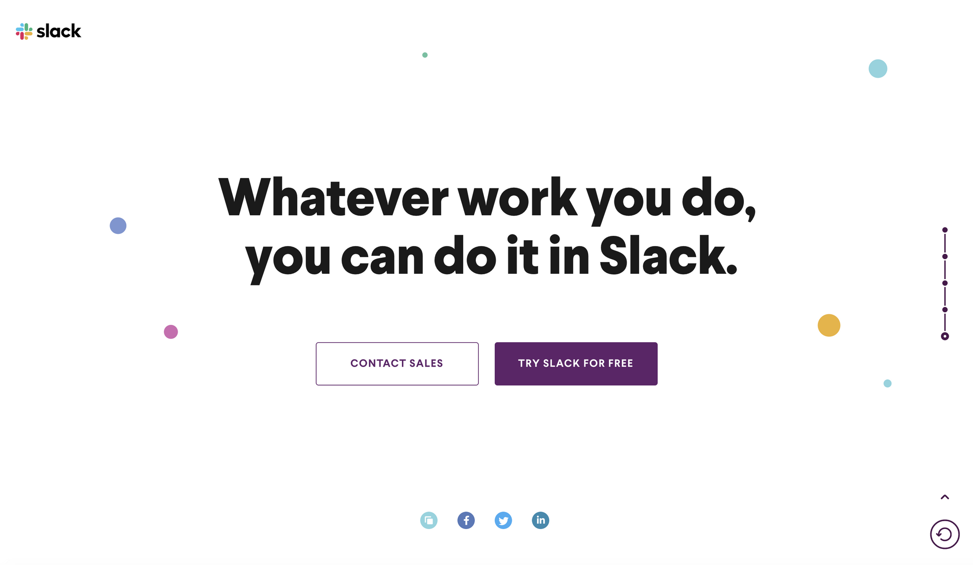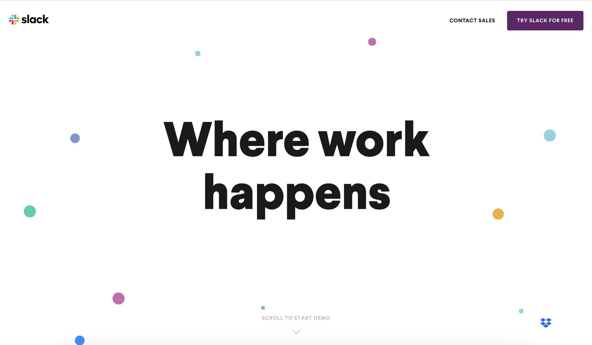 Most marketers would say that a prospect who has taken the trouble to scroll through an entire demo is a prime candidate for a call with sales. While it offers that option, Slack ends the demo by highlighting one CTA above all else: try the product.