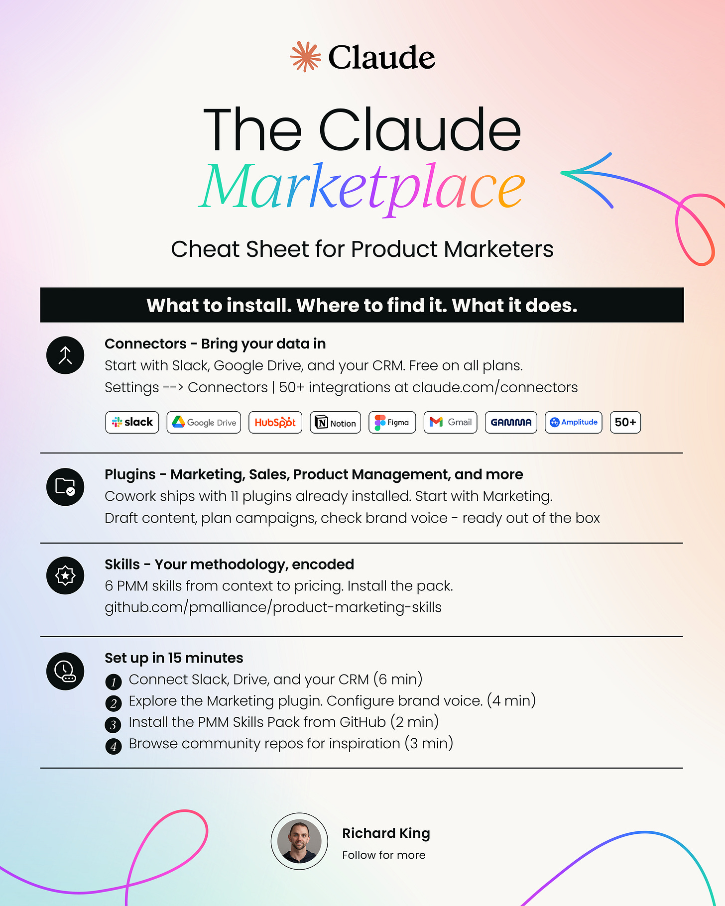 It’s tempting to connect every tool and install every plugin. Resist that. Each connector and plugin adds context Claude needs to process. Focus on the tools you actually use in your PMM workflow. Three well-configured connectors beat twelve unused ones.