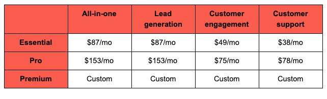 “Drift’s top tier for ‘conversational marketing’ - i.e. chat. It has loads of options even at low tiers and having used it for years I’ve seen the growth.